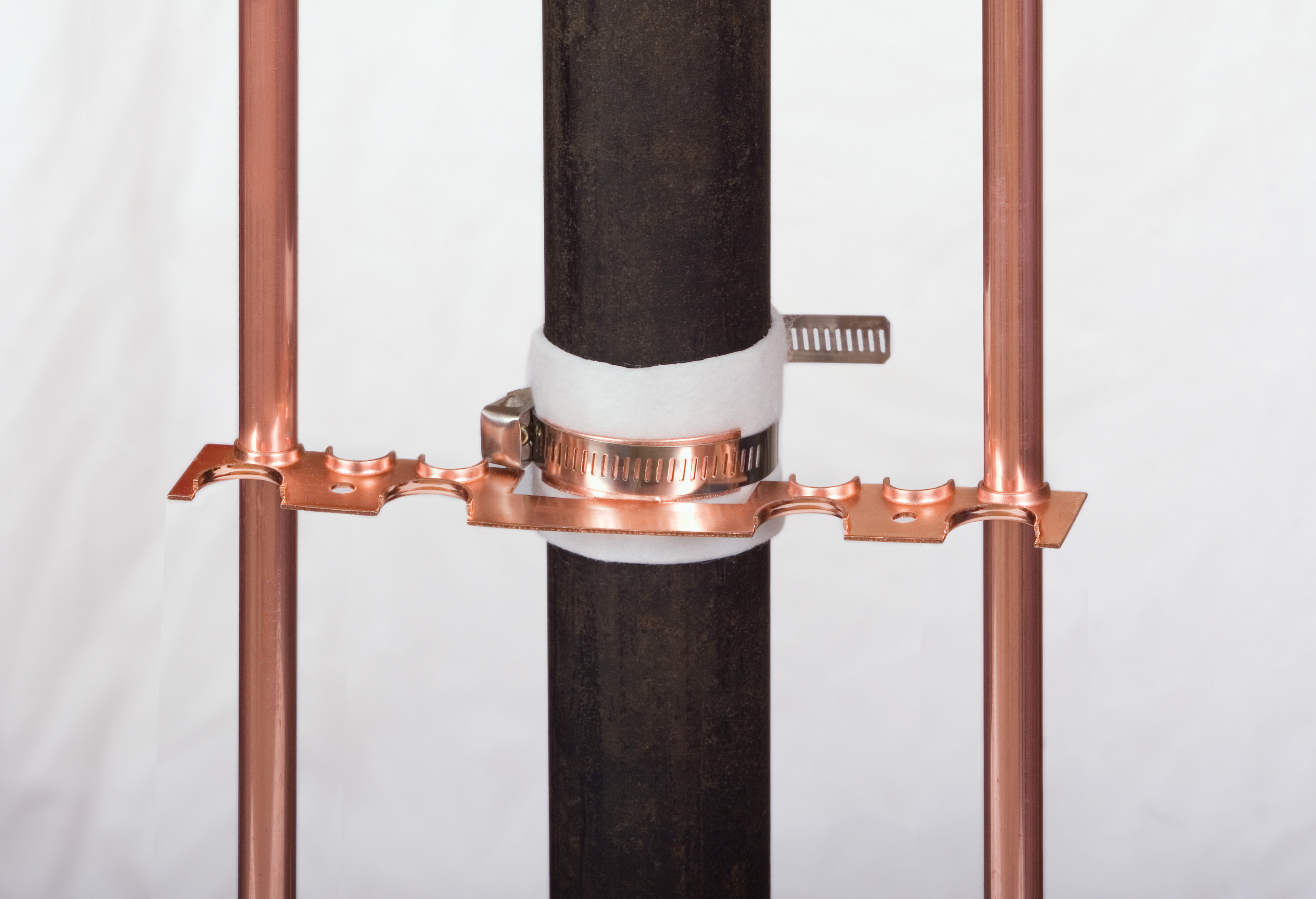 - • Copper-plated steel bracket attaches to vent or waste pipe.