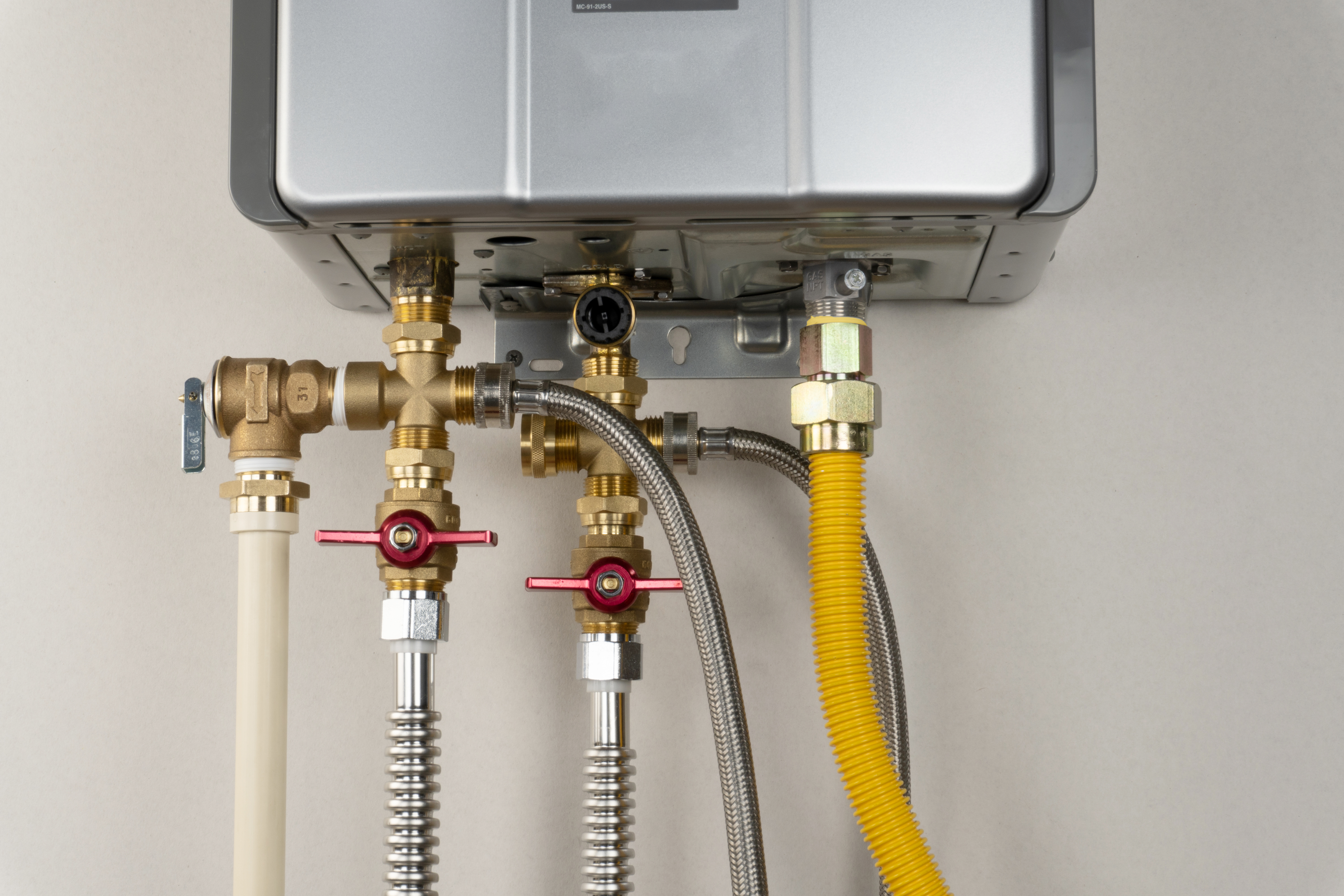 • • Full-port ball valves with large, anodized aluminum handles are easy to operate.