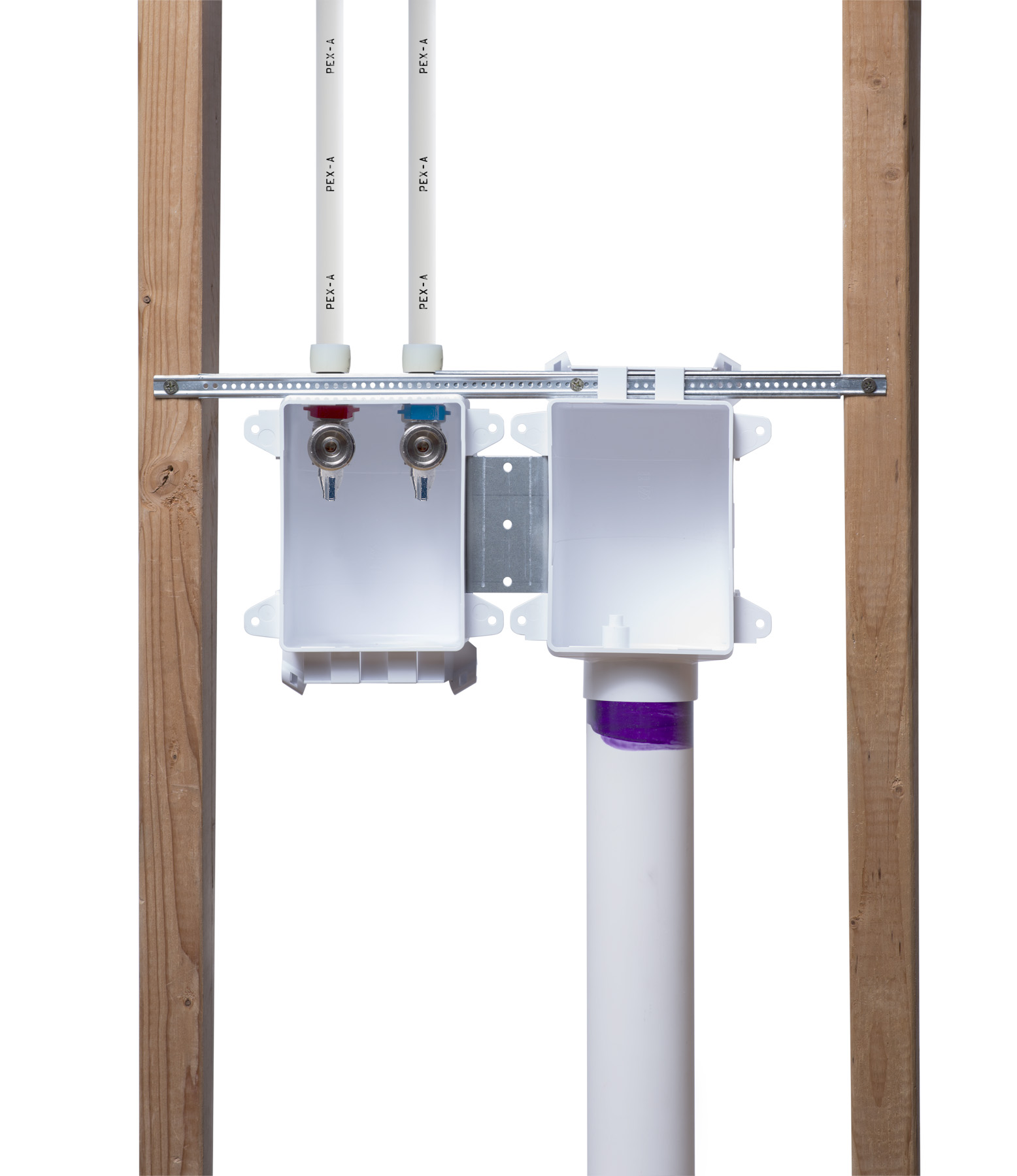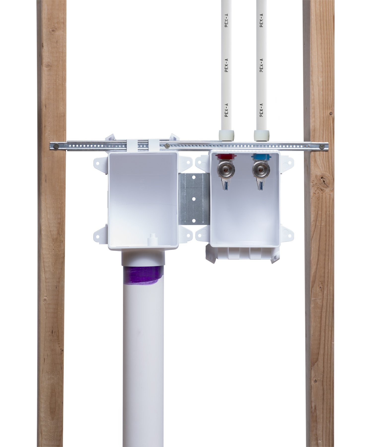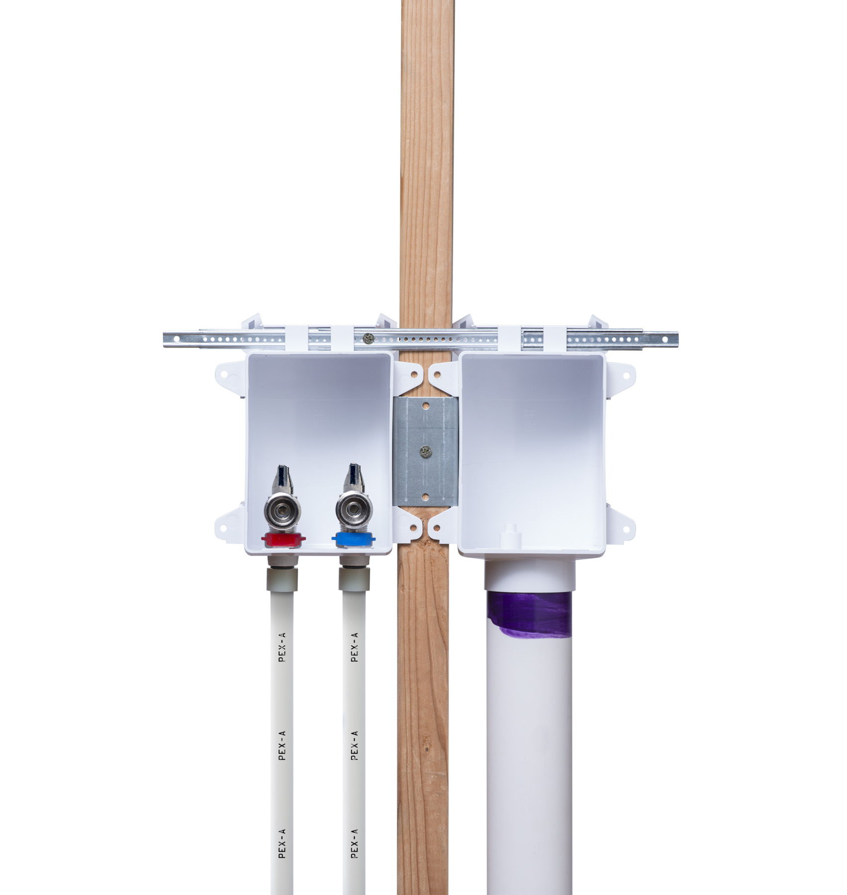 - • Mounts securely over stud or between studs.