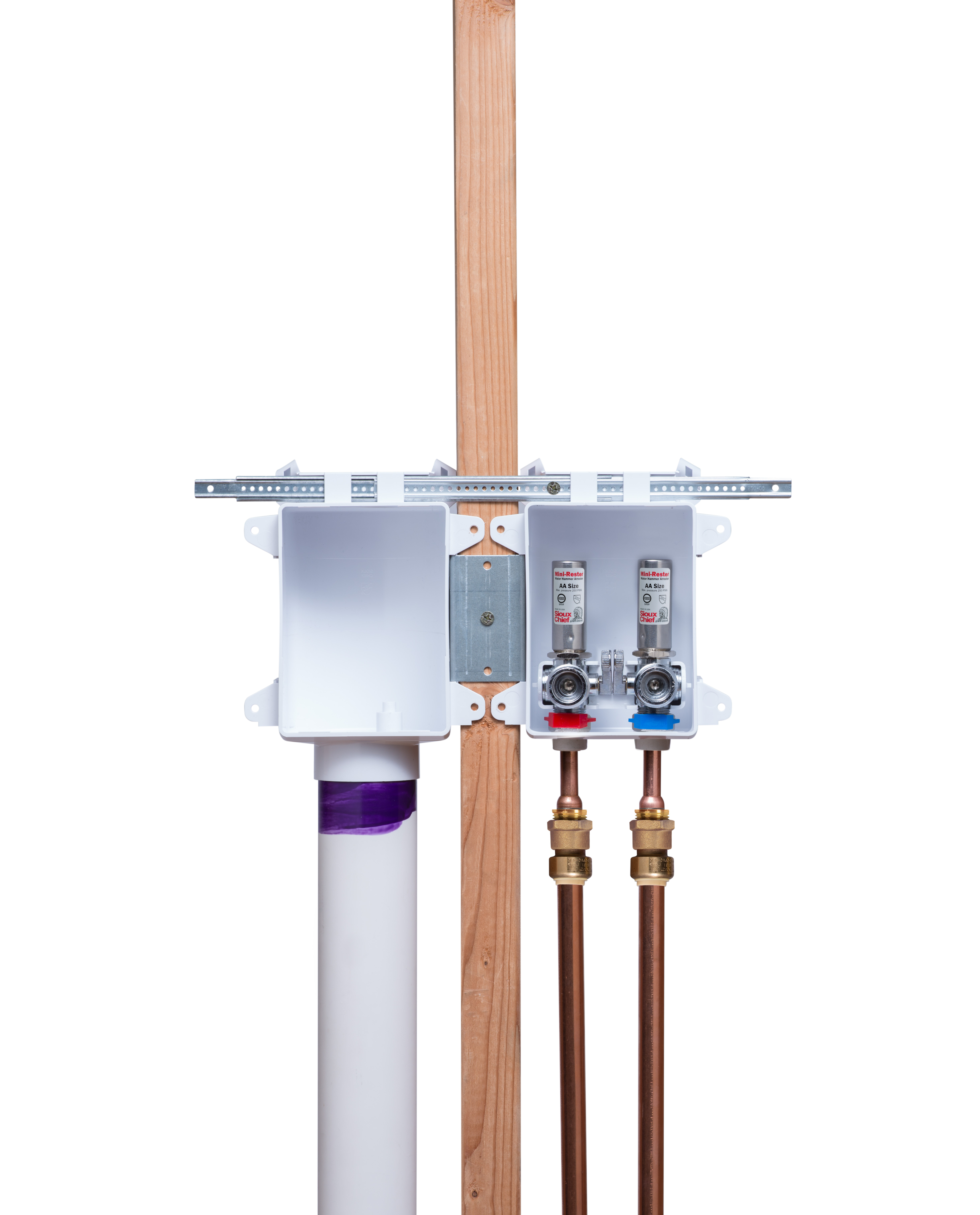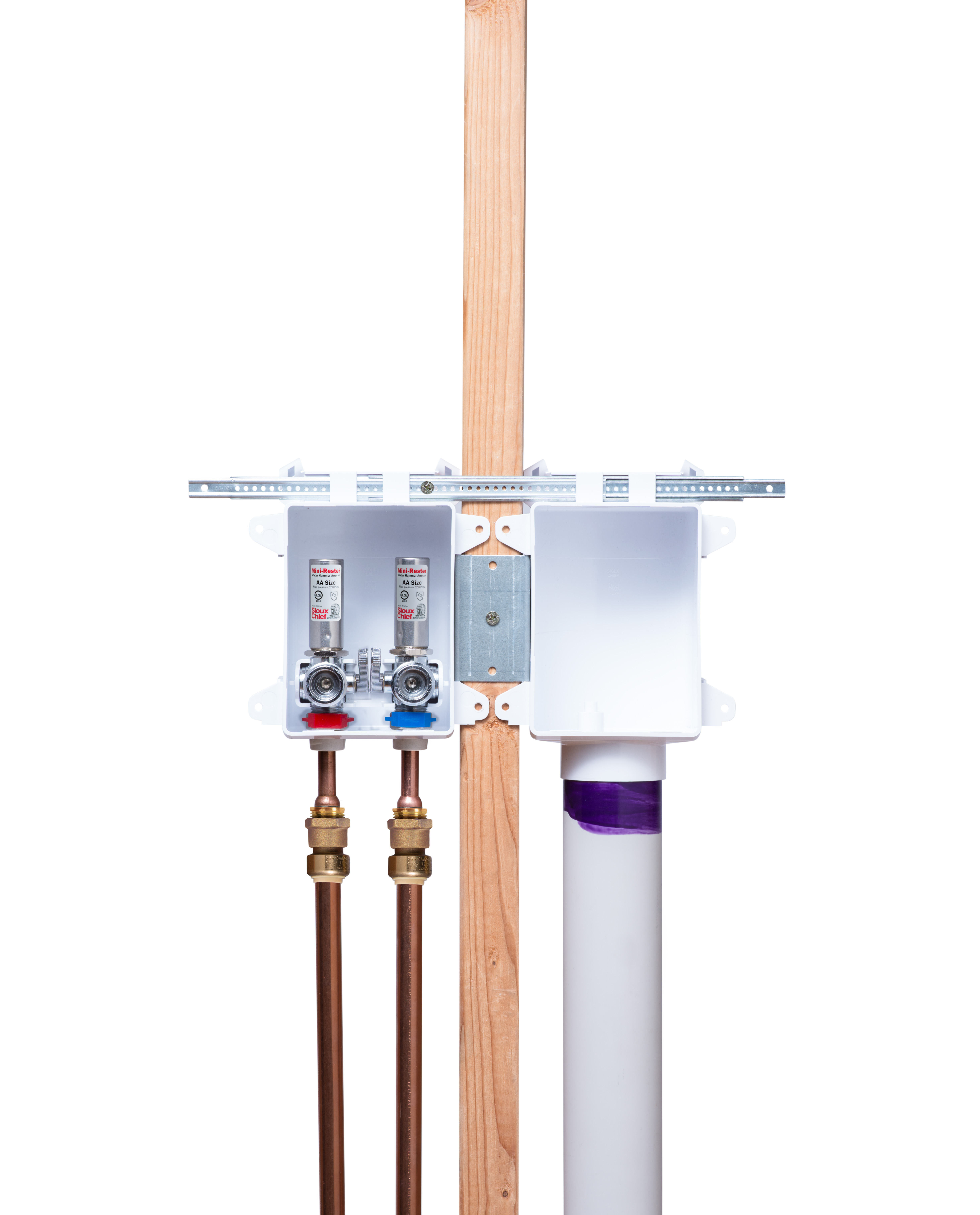 • • Mounts securely over stud or between studs.