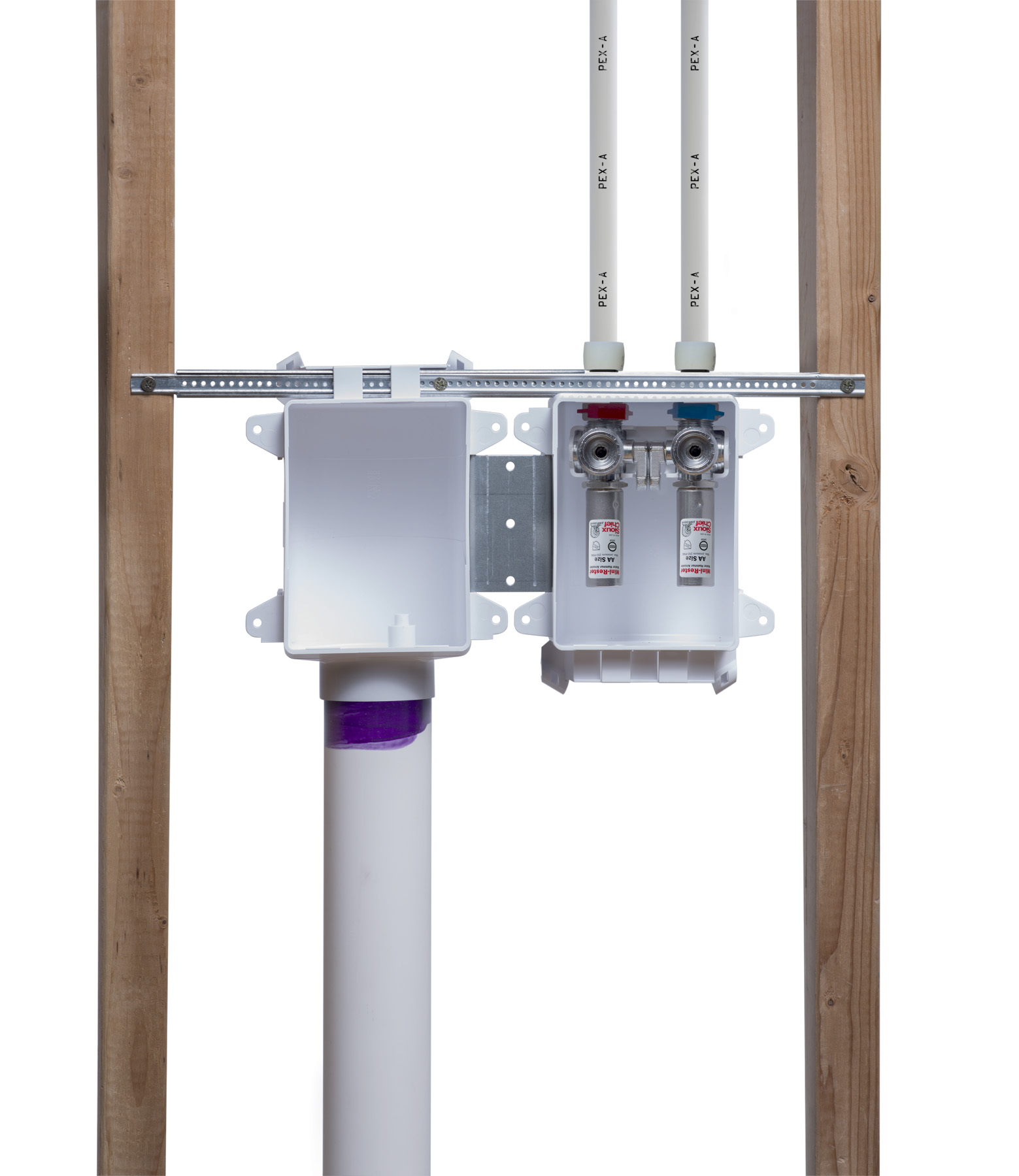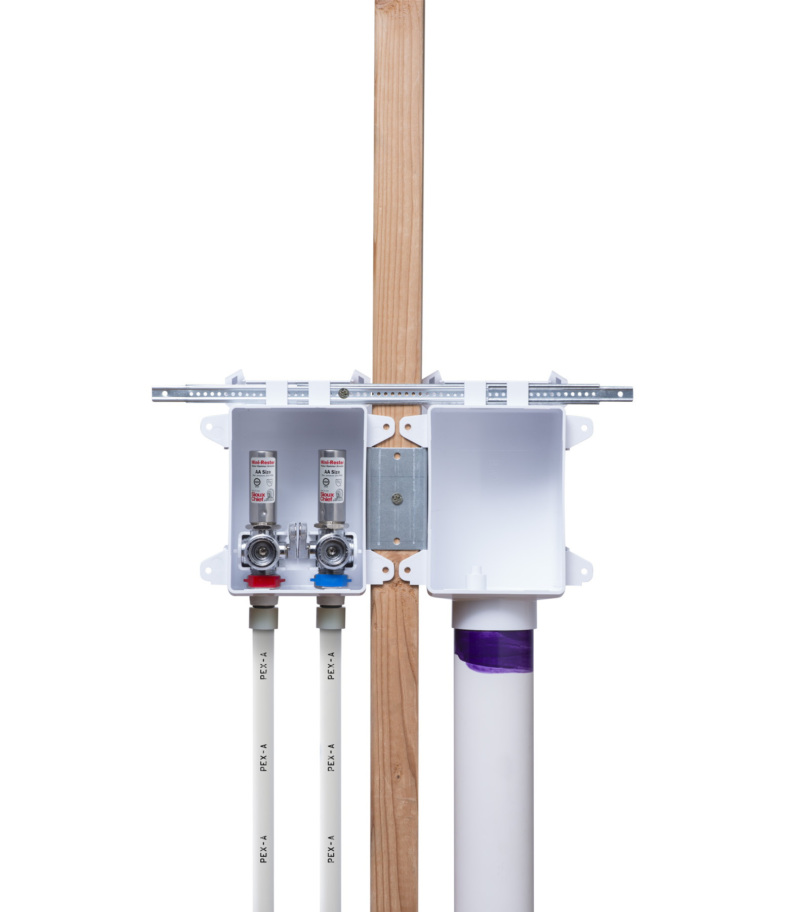 - • Mounts securely over stud or between studs.
